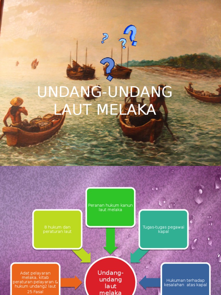 اوندڠ٢ لاءوت ملاک was a legal code of Melaka Sultanate 14001511 that deals specifically on matters related to maritime laws and regulations as well as nautical procedures concerning seafaring affairs of merchant. آوندڠ٢ لاوت ملاك was a legal code of Melaka Sultanate 1400-1511 that deals specifically on matters related to maritime. Melaka juga mempunyai ciri keselamatan dan ketenteraan yang lengkap terutama dengan penglibatan Orang Laut dan tokoh-tokoh kerajaan.