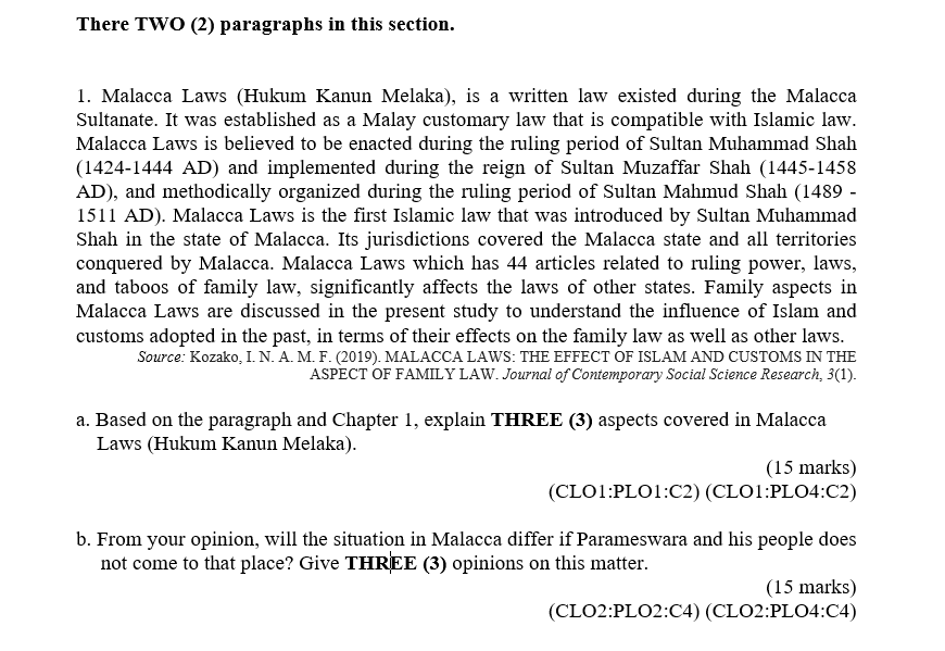 Solved There Two 2 Paragraphs In This Section 1 Malacca Chegg Com